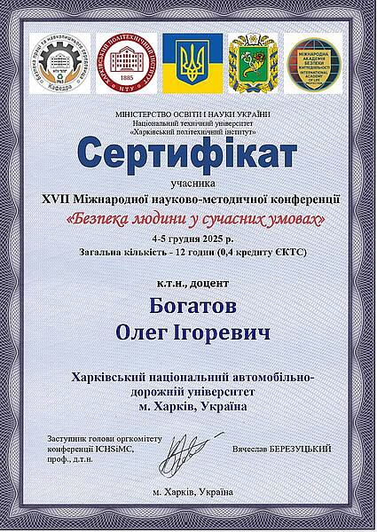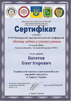 4-5 грудня 2025 року пройшла XVII Міжнародна науково-методична конференція "Безпека людини у сучасних умовах" на базі Національного технічного університету "Харківський політехнічний інститут".