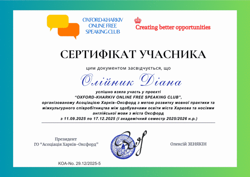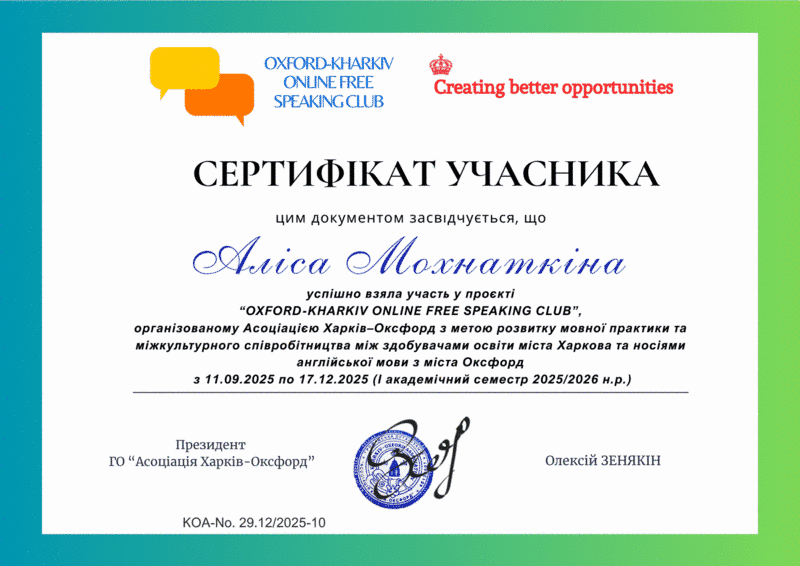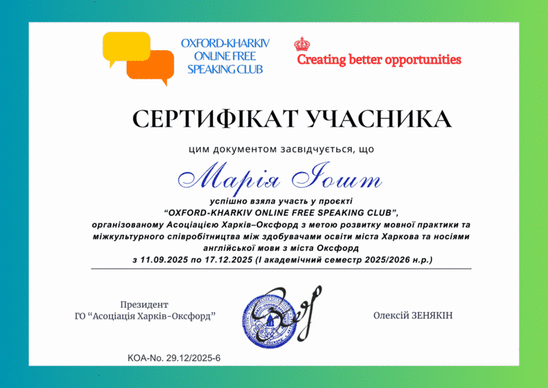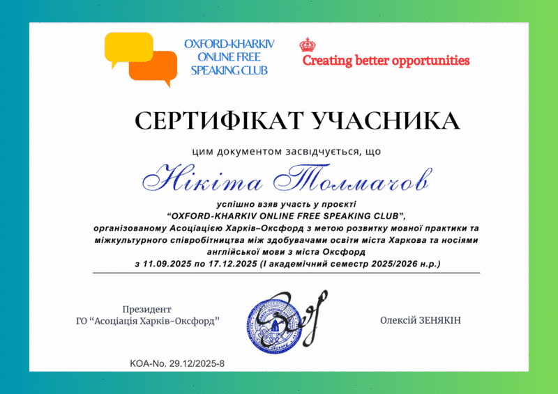 Асоціація «Харків–Оксфорд» підбила підсумки реалізації міжнародного освітнього проєкту “Oxford-Kharkiv Online Free Speaking Club” за осінній семестр 2025/2026 навчального року.