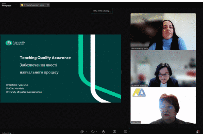 12 лютого 2025 відбувся семінар на тему «Процеси організації та здійснення контролю якості освіти у Великій Британії. Досвід Університету Екзітера» за організації за ініціативи та підтримки Університету Екзітера (Велика Британія) та Української асоціації маркетингу, в якому прийняла участь керівник відділу акредитації, стандартизації та якості навчання ХНАДУ Панкова Оксана. Присутні ознайомилися з практиками зовнішніх та внутрішніх процесів забезпечення якості освіти, що успішно застосовуються у Великій Британії і закладають основу конкурентоспроможності університетів та їх світових рейтингів. Обговорили питання: ролі процесів забезпечення якості освіти, досвід Великої Британії у формуванні механізмів забезпечення якості вищої освіти, приклади політик забезпечення якості освіти Університету Екзітера. Спікерами семінару були представники Університету Екзітера (Британія): Наталія Писаренко та Ольга Матвієць.