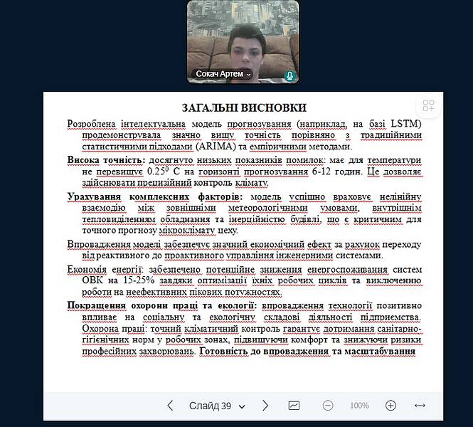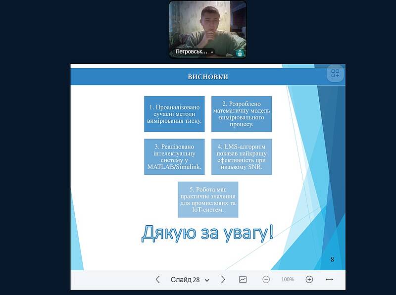 23.12.2025 року у онлайн режимі на базі кафедри метрології та БЖД відбувся другий день захисту кваліфікаційних робіт здобувачів другого (магістерського) рівня вищої освіти за спеціальністю 175 "Інформаційно-вимірювальні технології" та освітньою програмою "Інтелектуальні інформаційно-вимірювальні технології".