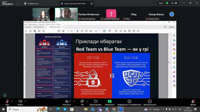 19 грудня 2025 року представники кафедри кібербезпеки доценти Наталя Вікторівна Діденко та Михайло Михайлович Піксасов разом зі здобувачами вищої освіти студентками групи МАК-11-25 Дар’єю Стрілець та Русланою Репринцевою презентували одну з найактуальніших освітніх програм — «Кібербезпека автоматизованих, мехатронних і робототехнічних систем» для учнів 11 класів ліцею №99 м. Харкова. Онлай-зустріч зібрала понад 30 абітурієнтів, які цікавляться світом інформаційних технологій і автоматизованих систем та їх захистом. У ході зустрічі були розглянуті та обговорені ключові напрямки підготовки за спеціальністю «Кібербезпека автоматизованих, мехатронних і робототехнічних систем», переваги навчання у ХНАДУ порівняно з іншими ЗВО, перспективи працевлаштування та питання з НМТ. Захід проходив у дружній, але водночас змістовній атмосфері. Було приємно бачити щирий інтерес молоді до складних технічних тем та бажання глибше зрозуміти світ ІТ. Ми дякуємо ліцеїстам за активну участь і запрошуємо приєднуватися до нашої університетської спільноти!