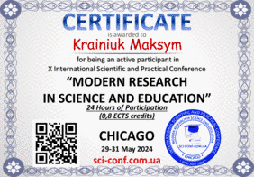 Студент Kрайнюк М. Ю. (спеціальність - інформаційно-вимірювальні технології) опублікував свою наукову статтю на конференції "Modern Research in Science and Education", що відбулася в Чикаго, США, з 29 по 31 травня 2024 року. Стаття під назвою "Hygienic assessment of the working conditions of the tractor driver's workplace in modern machine-tractor units" зайняла своє місце серед матеріалів конференції і доступна на сторінках видання BoScience Publisher.