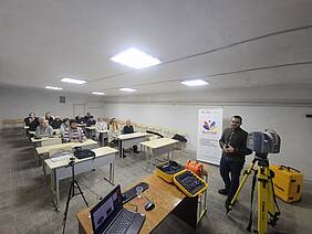 Інтеграція науки, освіти та практики. У рамках проєкту було реалізовано навчальні програми для двох груп слухачів (по 120 годин), у межах яких поєднано університетську експертизу ХНАДУ та практичну підготовку РЦПО БТ ХО. Завдяки участі команди ХНАДУ, зокрема директора Навчально-наукового інституту міжнародної освіти та співробітництва Холодова А.П., навчання розпочалося з освоєння сучасних цифрових технологій: використання професійних 3D-сканерів; створення цифрових моделей об’єктів у середовищі SketchUp; формування навичок цифрового проєктування для задач відбудови. Це забезпечило слухачам інтелектуальну основу для переходу від фіксації руйнувань до точного інженерного проєктування відновлення.