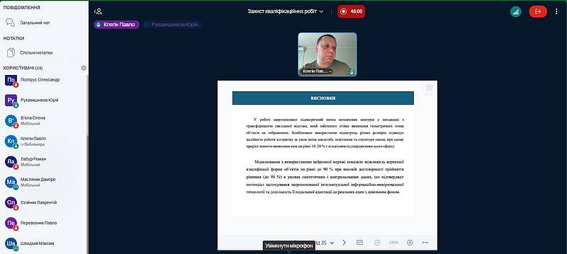 Роботи відзначались ґрунтовним теоретичним опрацюванням, практичною спрямованістю, використанням сучасних програмно- технічних засобів та відповідністю вимогам чинних національних та міжнародних стандартів. Члени комісії позитивно оцінили рівень підготовки випускників, їхню здатність аргументовано презентувати результати досліджень і відповідати на фахові запитання.