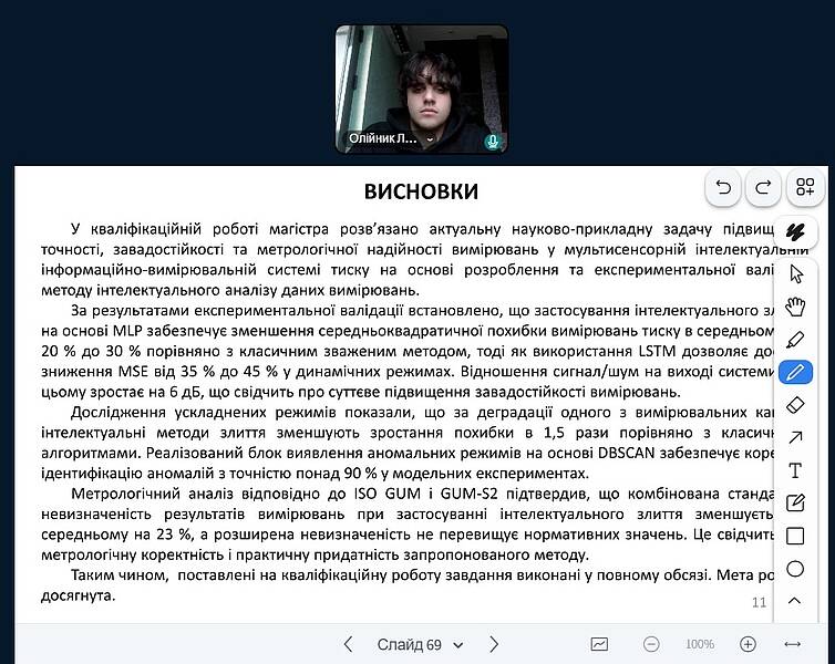 магістранти представили результати власних наукових і прикладних досліджень, присвячених акутальним питанням сучасної метрології, інформаційно-вимірювальних систем, цифрової обробки вимірювальних сигналів, підвищення точності та надійності вимірювань, а також впровадження інтелектуальних та IoT-орієнтованих технологій у вимірювальну практику.