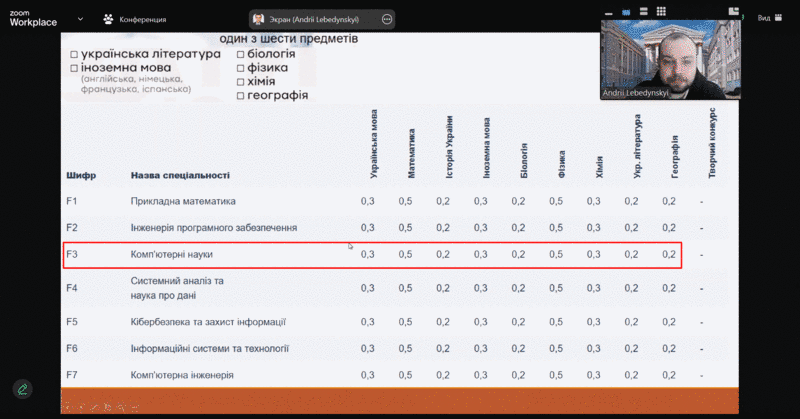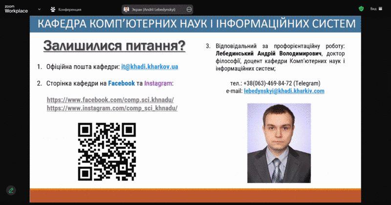 Доцент кафедри Комп’ютерних наук і інформаційних систем Харківського національного автомобільно-дорожнього університету, Лебединський А.В., провів онлайн-зустріч у Zoom з учнями 11-Б класу Харківського ліцею №28.