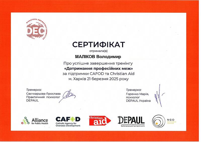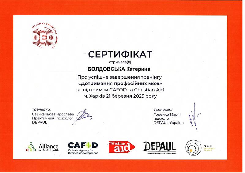 Тренінг відбувся завдяки командній співпраці Depaul Україна з партнерами CAFOD, Christian Aid, Альянсом громадського здоров’я та Ресурсним центром НДО, які відзначають критичну важливість розвитку професійних навичок та зростання фахівців, особливо в умовах воєнного часу. На цьому заході ми мали можливість поділитися досвідом та перейняти найкращі практики та отримати цінні практичні знання та навички стосовно відстоювання особистих кордонів, вміння м'якого заперечення, врахування особистісних властивостей здобувачів, навичок говорити "ні" та ін.