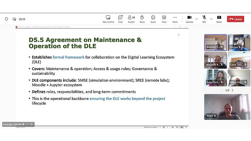 21 квітня 2026 р. представники кафедри Автомобільної електроніки ХНАДУ прийняли учать у онлайн зустрічі в рамках реалізації проєкту Erasmus+ «Цифрова трансформація освітнього процесу вищих навчальних закладів в Україні та Молдові для сталої взаємодії з підприємствами» (Digital transformation of HEIs education process in Ukraine and Moldova for sustainable engagement with enterprises).