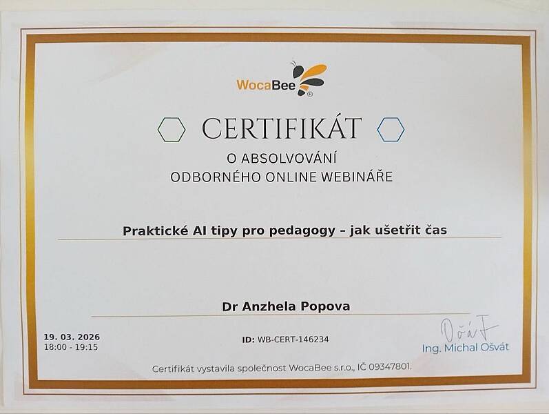 За результатами участі Анжела Попова отримала відповідний сертифікат, що підтверджує підвищення кваліфікації та опанування актуальних цифрових інструментів.