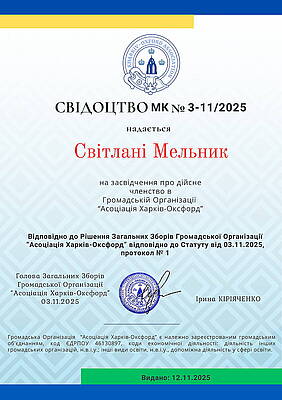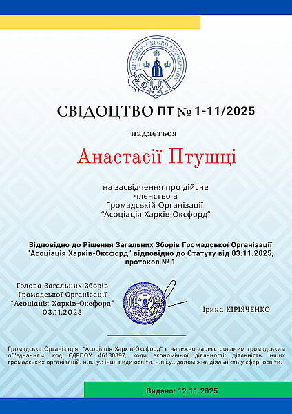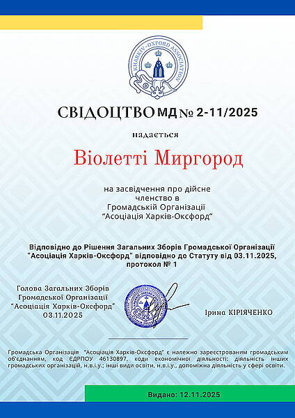 Членство в Громадській Організації «Асоціація Харків–Оксфорд»