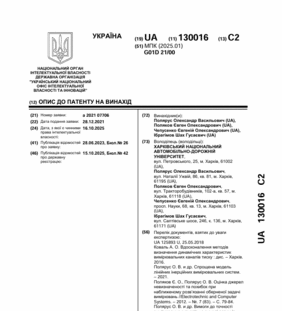 Патент на винахід № 130016; номер заявки a 2021 07706; 15.10.2025; Бюлетень № 42/2025.