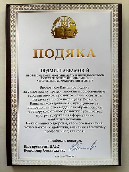 Це високе визнання є свідченням значущості наукової школи і результатів  професорки, її вагомого внеску у розвиток транспортної галузі, формування сучасних підходів у напрямі організації і безпеки дорожнього руху, та безперечно є підтвердженням потужного наукового потенціалу факультету транспортних систем ХНАДУ.