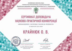 18 вересня 2025 року завідувачка кафедри кібербезпеки ХНАДУ Олена Крайнюк взяла участь у науково-практичній конференції «Винахідники і науковці: разом до перемоги», що відбулася у Харківській державній науковій бібліотеці ім. В. Г. Короленка.