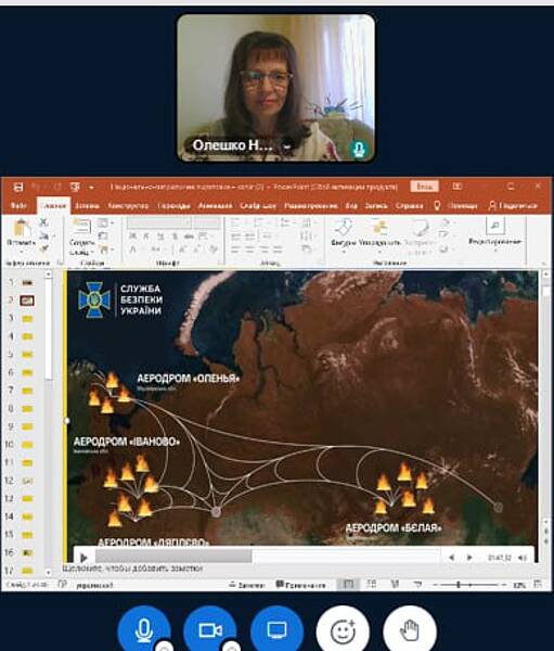 Доц. Олешко Н.П. здійснено показ фільму «Операція «Павутина»» про проведення однієї з наймасштабніших операцій СБУ «Павутина» 1 червня 2025 року в глибокому тилу ворога по російській стратегічній авіації, внаслідок якої було нейтралізовано 41 ворожий літак (34 %). Операція, розроблена і здійснена під керівництвом Голови Служби безпеки України Малюка Василя Васильовича, вразила світ своєю успішністю, чітким плануванням і скоординованістю, сміливістю та креативністю українських воїнів і здатністю України успішно протистояти російській агресії.