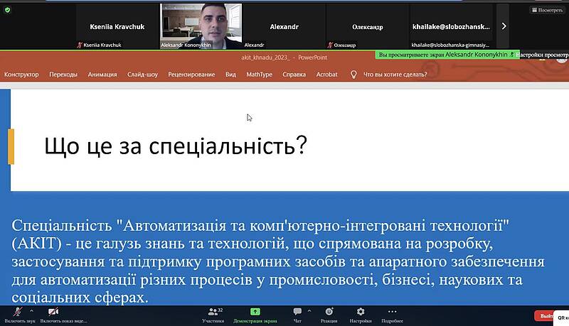 Онлайн-зустріч кафедри АКІТ з ліцеїстами та викладачами Слобожанського ліцею №2