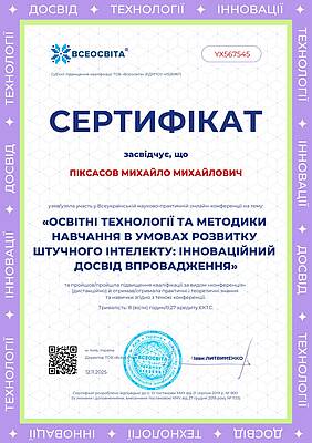 Доценти кафедри кібербезпеки Михайло ПіксасовНаталя Діденко взяли участь у онлайн-конференції "Освітні технології та методики навчання в умовах розвитку штучного інтелекту: інноваційний досвід та впровадження", де викладачі зібралися, щоб обговорити ключові аспекти інтеграції штучного інтелекту (ШІ) в освітній процес. Головною метою заходу, організованого для вдосконалення професійних компетентностей педагогів, стало не лише обговорення інновацій, але й демонстрація їх практичного застосування.