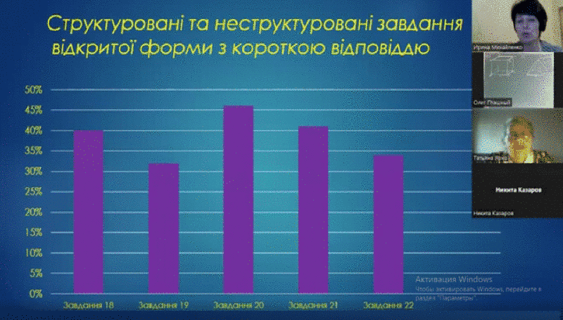 За результатами отриманих відповідей кафедра вищої математики провела вебінар з математики, де ознайомила учасників із загальними результатами пробного тестування, із статистикою щодо успішного виконання завдань та виявлених проблем. Під час вебінару було продемонстровано вірні розв’язання проблемних завдань, а також було дано відповіді на запитання учасників вебінару.