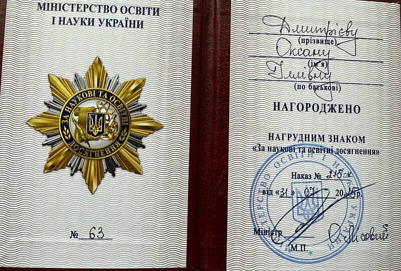 Щиро вітаємо Оксану Іллівну з заслуженою нагородою та бажаємо нових професійних звершень!