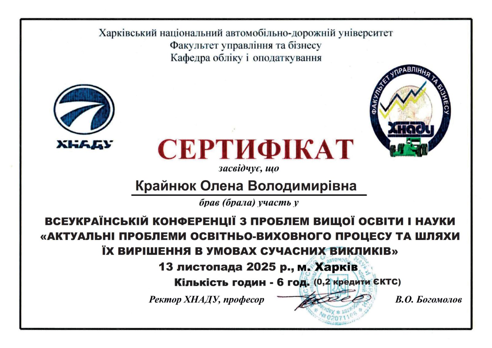 Опубліковано: 04/12/2025 Міжнародне підвищення кваліфікації Викладач кафедри іноземних мов Лук'яненко Наталія Миколаївна успішно пройшла міжнародне підвищення кваліфікації “AI Mindset in Entrepreneurial Spaces” International Training Program by EIT HEI-TRAIN (180 академічних годин, 6 ECTS, No.:... Далі