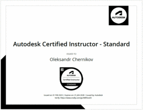 Особи, які отримали сертифікат Autodesk Certified Instructor, продемонстрували навички викладання та проведення занять, а також необхідні знання конкретних програм Autodesk, необхідні для проведення курсів у навчальному середовищі.