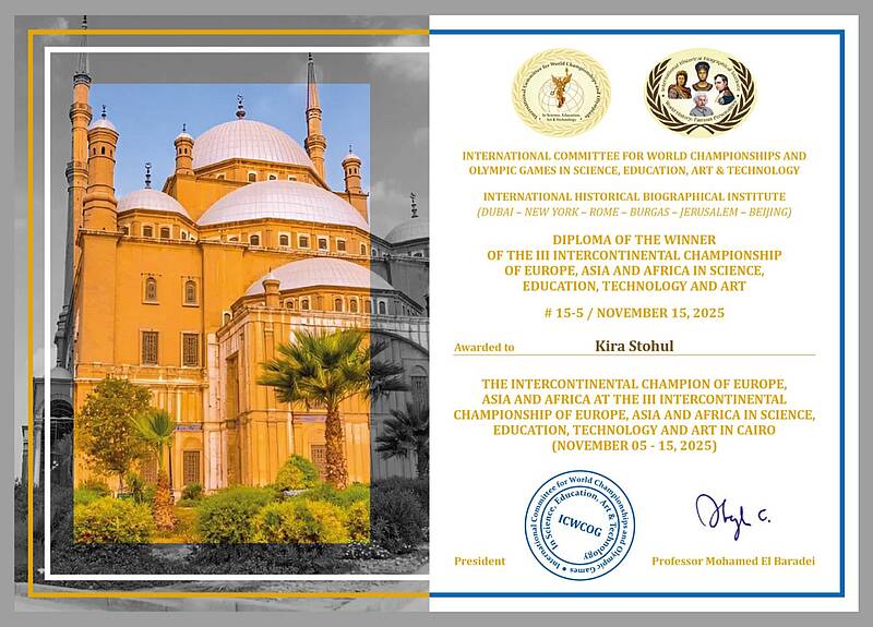 У період 5-15 листопада 2025 року в м. Каїр (Єгипет) відбувся III Міжконтинентальний чемпіонат Європи, Азії та Африки з науки, освіти, технологій та мистецтва.