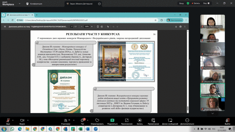 Кафедра менеджменту щиро вітає здобувачів вищої освіти ступеня магістра спеціальності 073 «Менеджмент» з успішним захистом кваліфікаційних робіт, який відбувався у період з 22 по 26 грудня 2025 року. Захисти пройшли на високому науковому та професійному рівні та засвідчили ґрунтовну підготовку випускників, їх здатність комплексно аналізувати сучасні управлінські проблеми, аргументовано представляти результати досліджень і пропонувати обґрунтовані управлінські рішення з урахуванням умов воєнних викликів, післявоєнного відновлення та цифрової трансформації економіки.