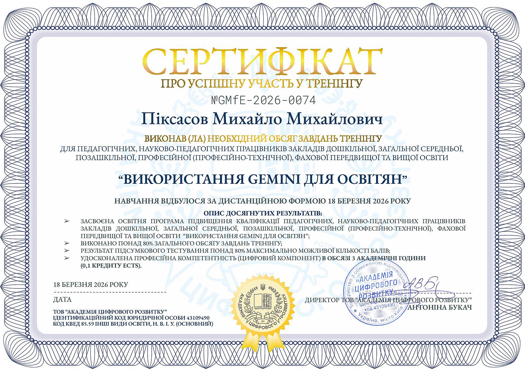 Програма підвищила цифрову компетентність викладачів. Вона дала змогу працювати з інноваційною екосистемою генеративного...